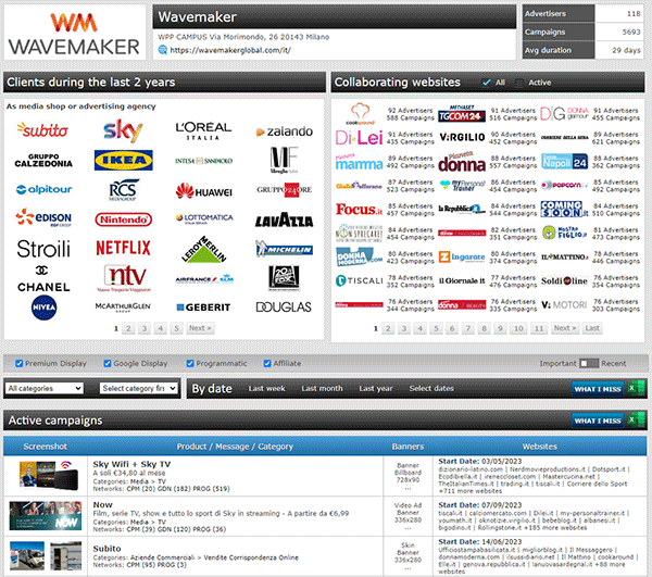 - Scenari globali di pubblicità digitale: Scopri le aziende che stanno comunicando online e i settori ai quali appartengono.